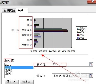 第七步,然后修改【系列】-【名称】,这样整体的条形图就完成了。
