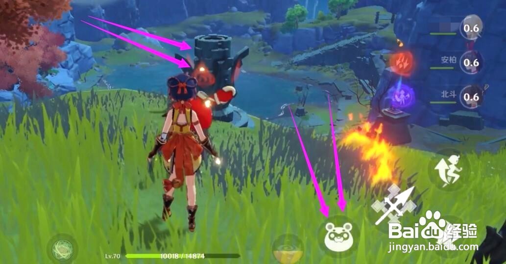 太山府附近的三个元素柱子如何点亮,跟着下面操作试试看。