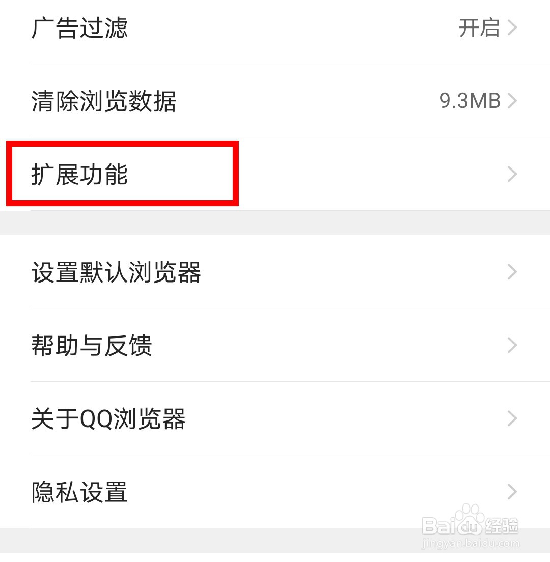 打开后,点击“扩展功能”。
