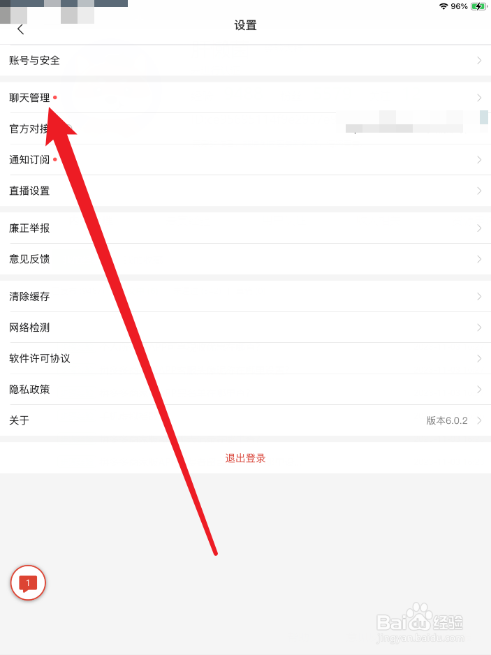 进入聊天管理页面,点击右边的开关即可开启APP内消息通知。