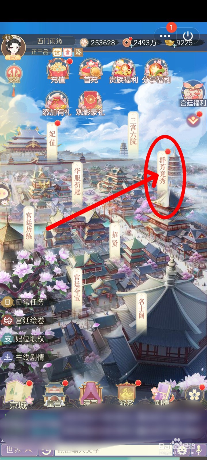 打开 盛世芳华 游戏;选择【群芳竞秀】项目。