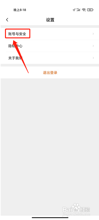 步骤三;进入设置窗口,点击【账号与安全】选项 。