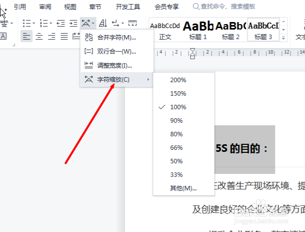点击中文版式中的字符缩放,选择需要的缩放比例即可。