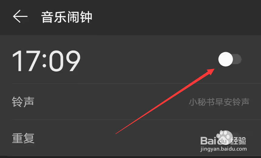 进入设置页面,点击音乐闹钟选项。