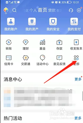 1.打开交通银行软件—登陆交通银行app—进入首页—选择全部。