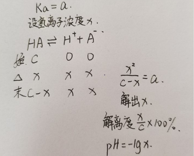 仅知道某一元弱酸浓度,如何求其解离度及其中氢离子的浓度