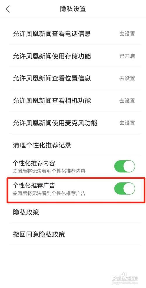 第三步:在隐私设置页面,将【个性化推荐广告】选项关闭即可!
