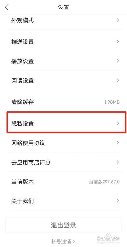 第二步:在设置页面,点击【隐私设置】选项进入!