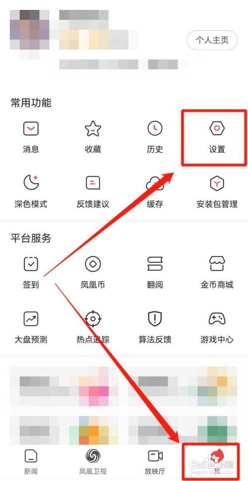 第一步:打开凤凰新闻App我页面,点击【设置】选项进入,如图所示。