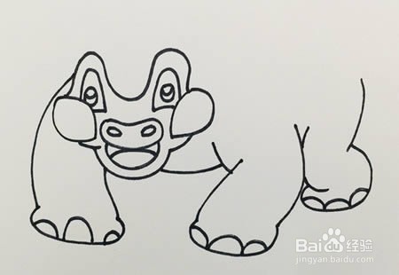 第二步: 然后画出甲龙的身体,先画它的四肢,四肢很短,在下方画上它的脚趾