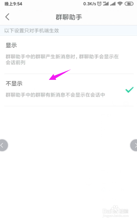 【群聊助手】默认是【显示】的,泥缝够如图。
