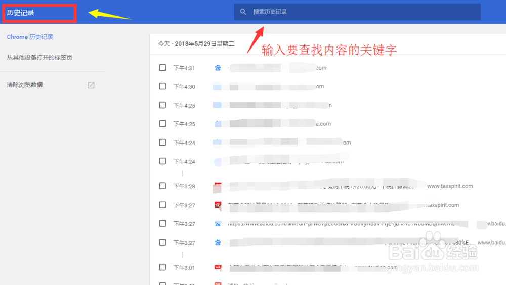 这时,就能看见我们近期浏览的许多信息,可以输入要查找的内容关键字来查找,当然,前提是你要记得网页名称的大概关键字。
