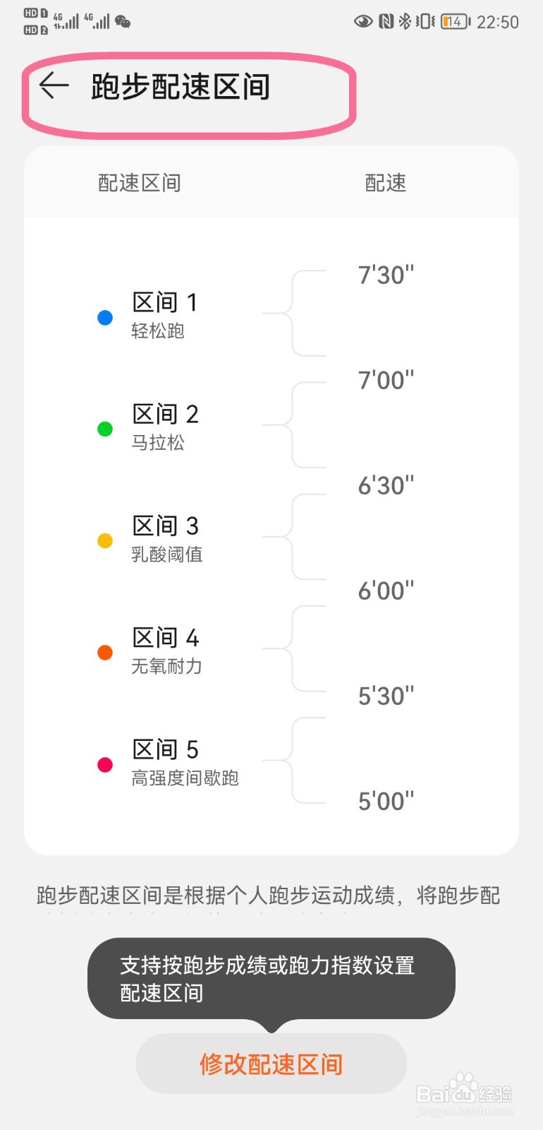 下图即为跑步区间配速设置。