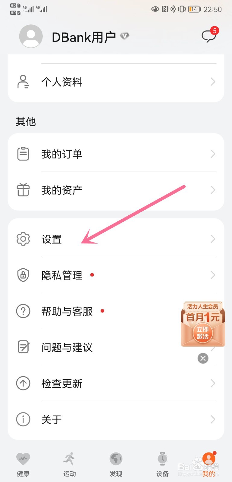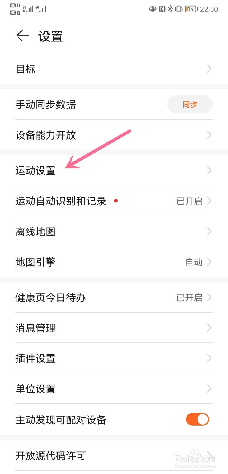 页面跳转后,点击【运动设置】。