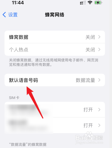 进入蜂窝网络页面,点击【默认语音号码】选项