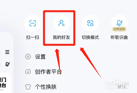 点进酷狗更多功能界面,切换至“我的好友”页面。