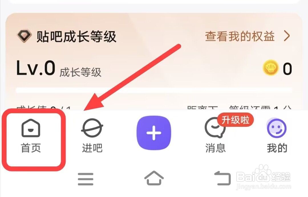 第一步,在百度贴吧的页面,点击左下角的首页。