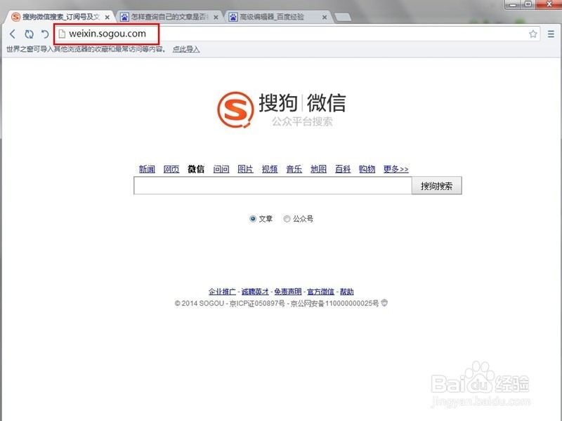 打开浏览器,在地址栏内输入搜狗微信的地址,如图