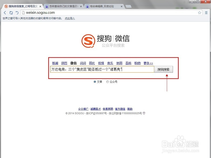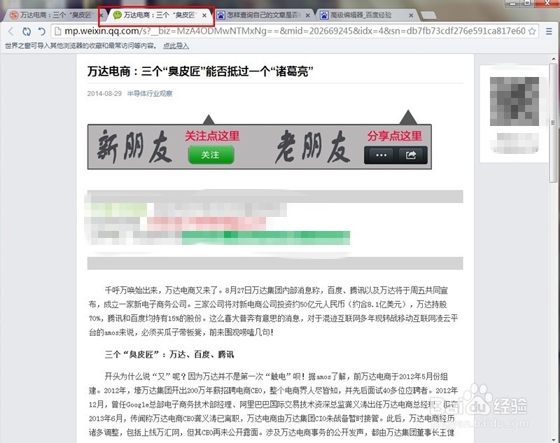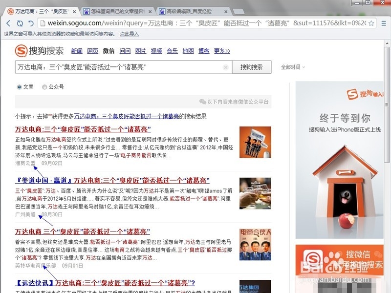 搜索到很多这个标题的文章,我们就可以看到都有哪些公众号转载了这篇文章