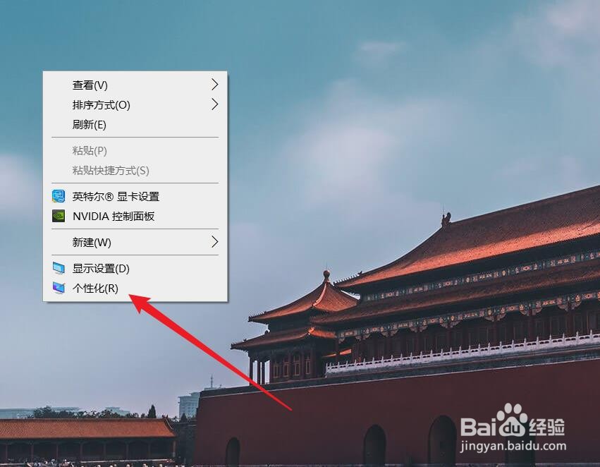 1、首先在电脑桌面的右键菜单中,点击选择个性化。