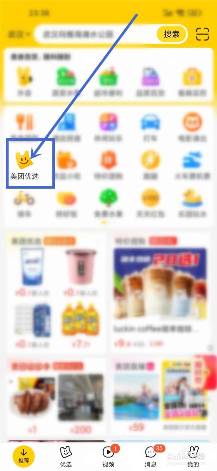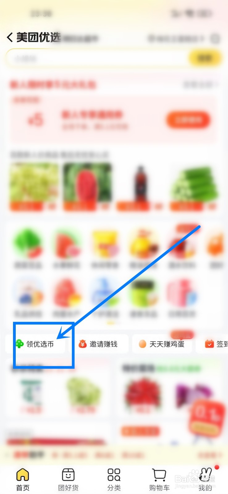 进入美团优选首页,点击散粒怕“领优选币”图标。