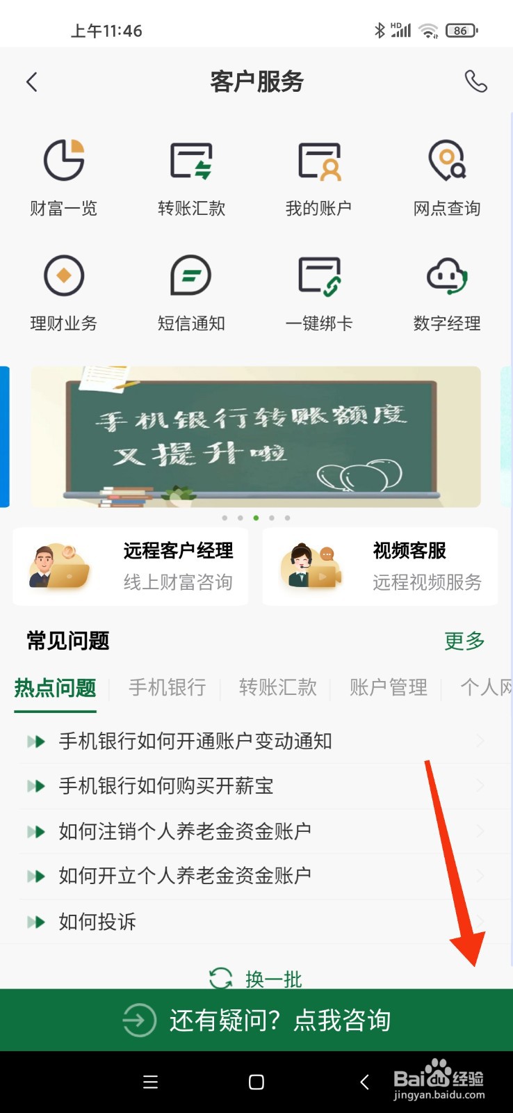 点击客户服务,如下图,看到还有疑问?点我咨询