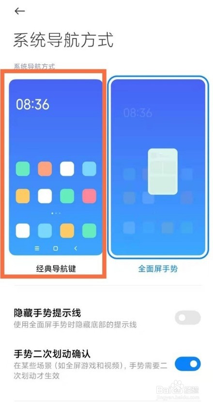 第3步,点击选择【经典导航键】即可。