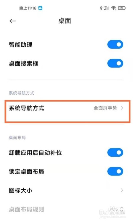 第2步,点击【系统导航方式】选项。