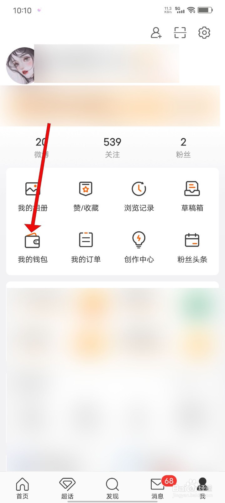 首先打开微博软件APP,进入主页后,点击下方【我的钱包】进入