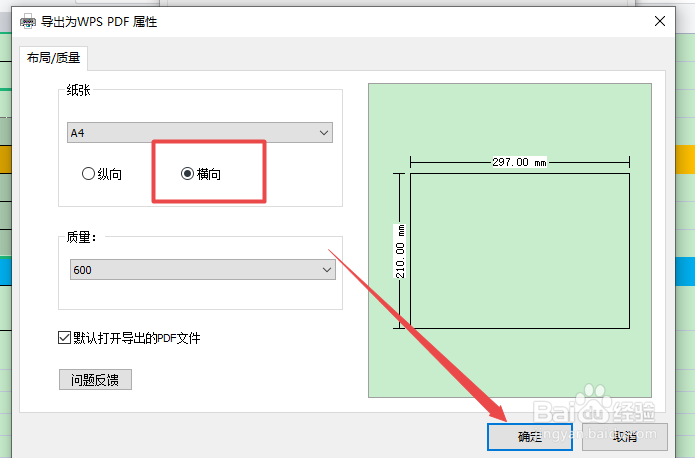在打印属性窗口中,选择“横向”,点击确定,然后去完成打印即可。