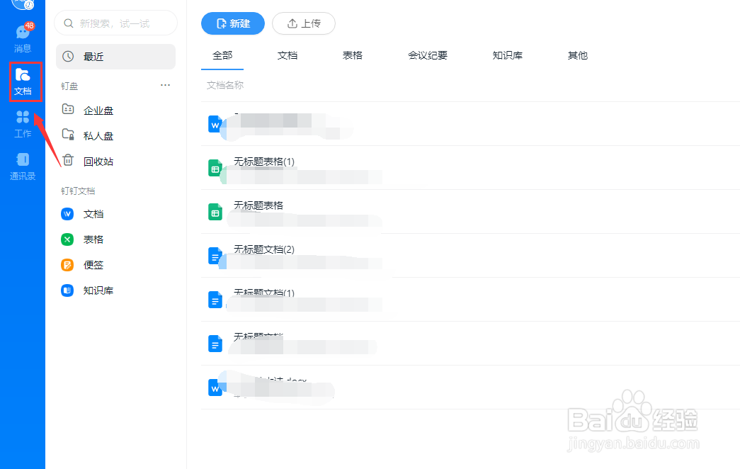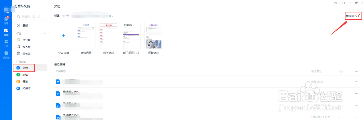 点击钉钉文档选项卡,选择右上角的“模板中心”按钮