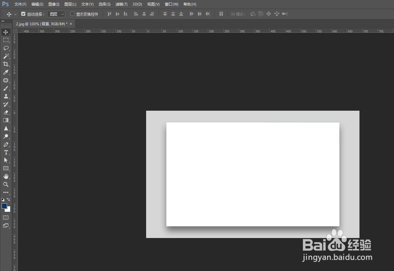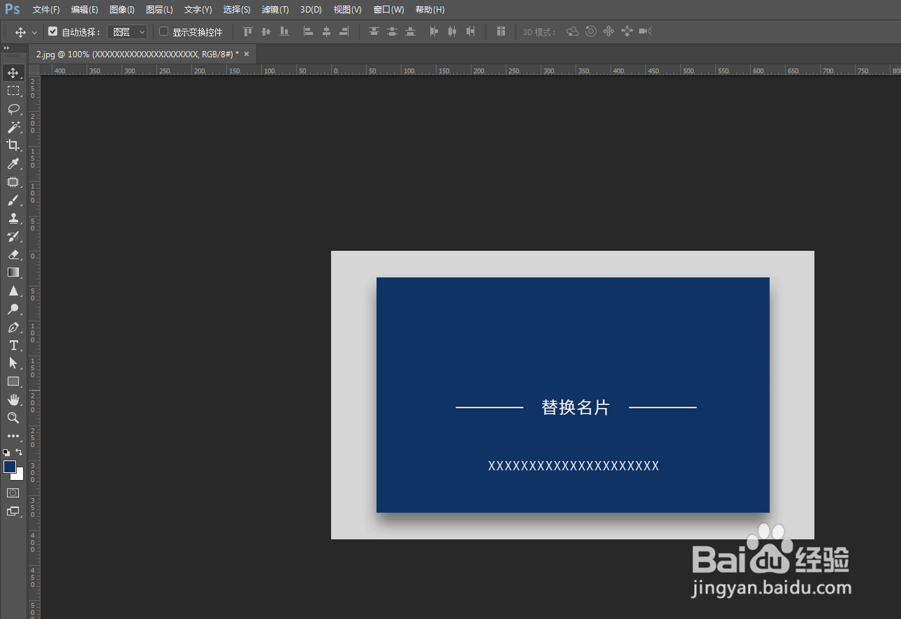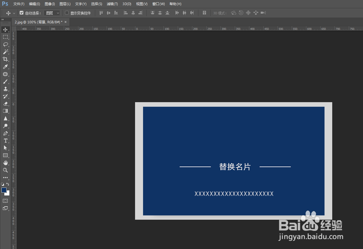 首先打开Photoshop软件,从电脑拖入一张空白的名片样机素材