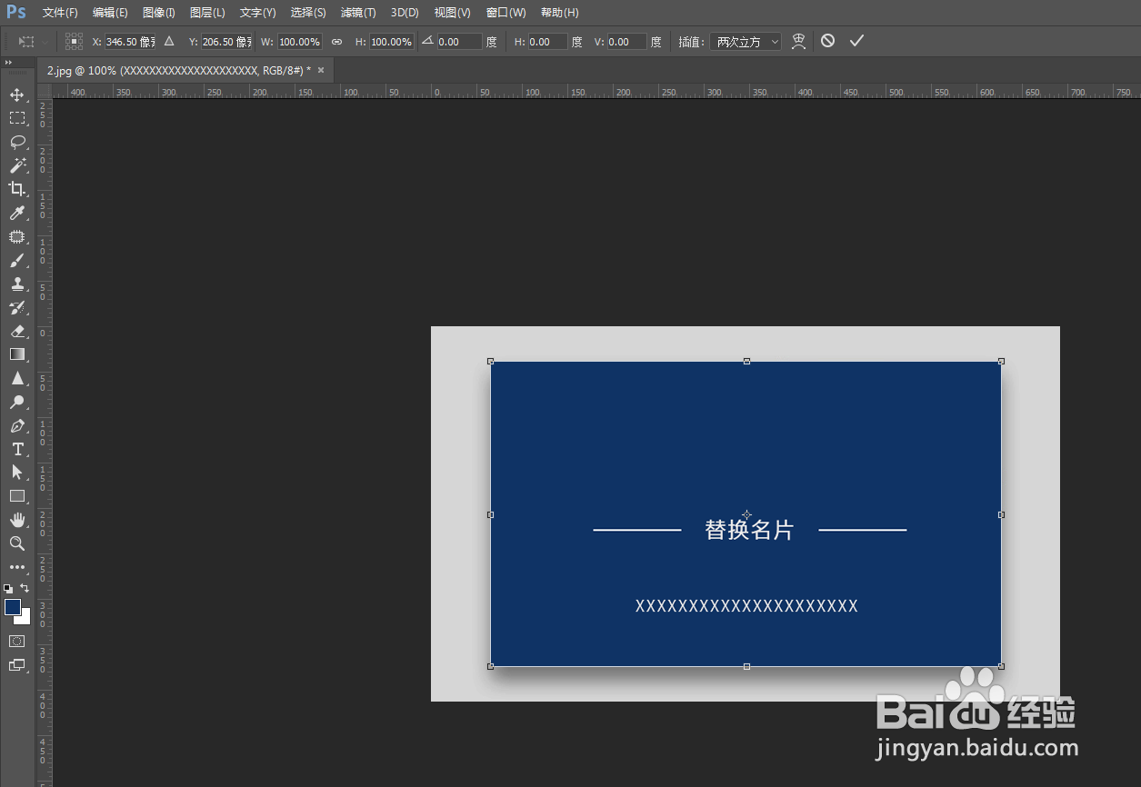 再从电脑拖入一张自己做过的名片图片,移到相对应位置