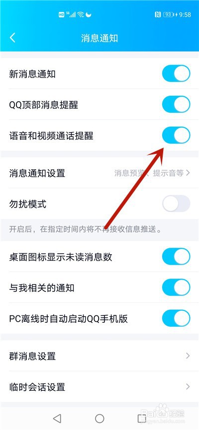 最后压摸将语音和视频通话提醒按钮开启,就可以收到视频通话消息提醒了。