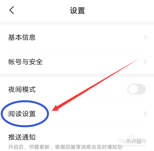 第二步:进入设置界面,选择【阅读设置】