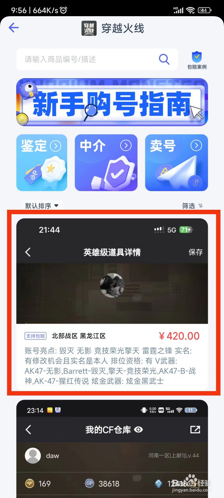 点击进去后,我们就可以看到可以购买的账号,玩家可以自己随意挑选心仪的账号,如果有喜欢的,点击进去可以看到这个游戏账号的详情信息等等。
