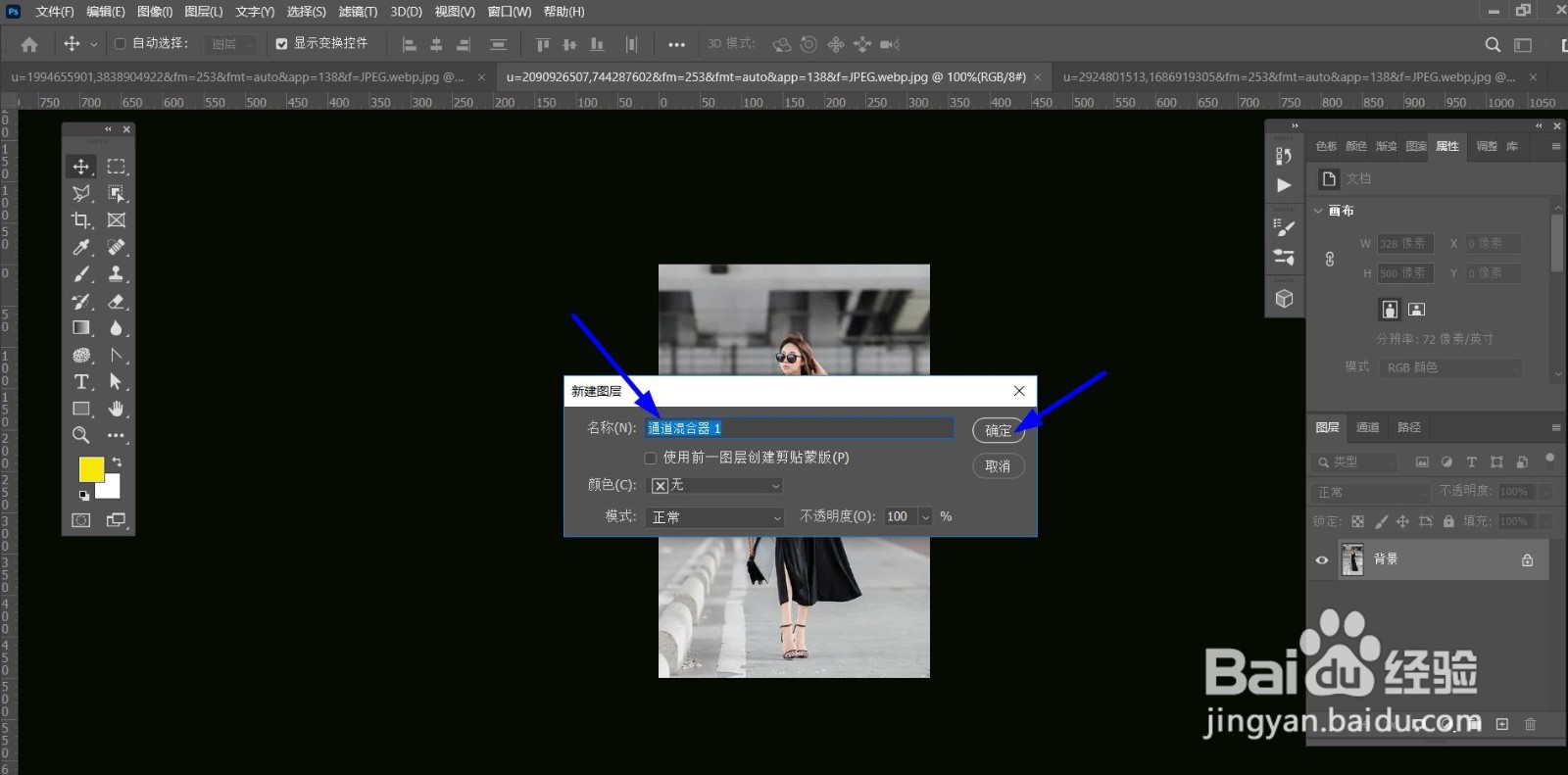 第3步:最后在【新建图层】的【名称】对话框中输入名称后点击【确定】按钮,图层通道混合器就创建成功了。