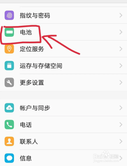 进入到界面点击电池选项