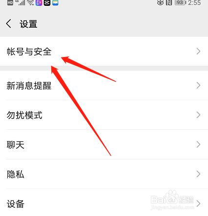 接下来我们需要点击“账号与安全”选项。