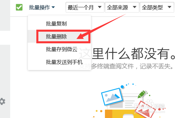 点击【批量删除】,如图。这样,我们就可以直接批量删除这些已发送的文件了。
