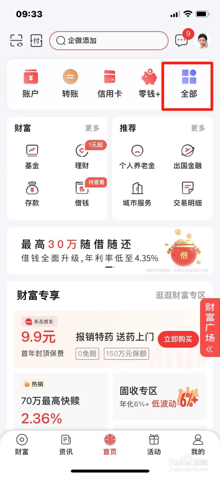 第一步:打开【中信银行】APP,点击【全部】。