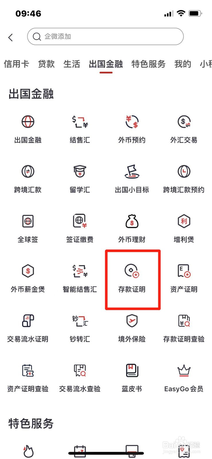 第二步:在全部功能页面点击【存款证明】。