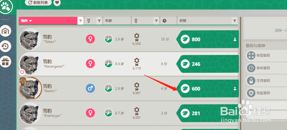 这时会看到雪豹,点击购买即可。在购买过程中,我们要确定自己的保育点数足够才可以。保育点数是在“品牌事业”模式中才会有的。