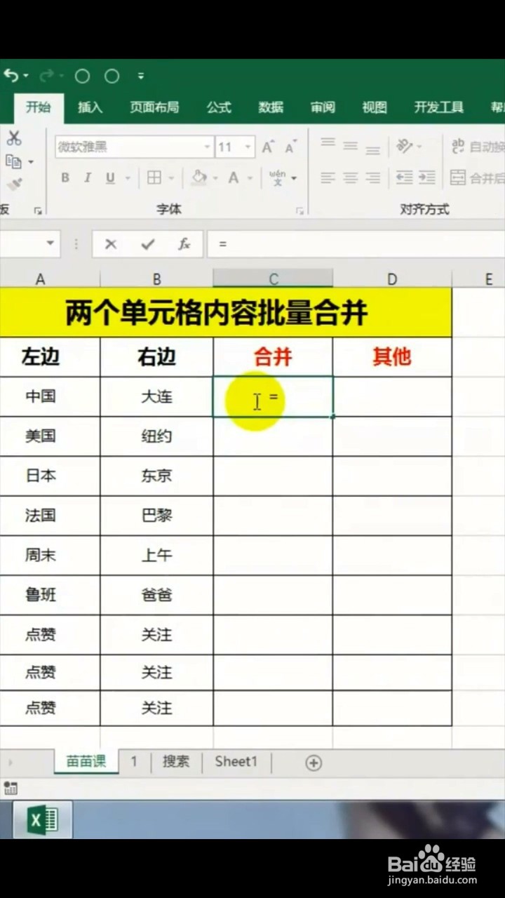 Excel是一个电子表格处理软件,可以用来制作电子表格、完成许多复杂的数据运算,进行数据分析和预测,且具有强大的制作图表的功能。下面给大家介绍一下两个单元格内容批量合并。