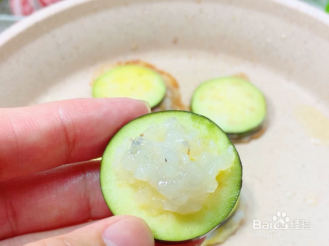煎至茄子变软变色,再翻煎另一面,熟透即可出锅。