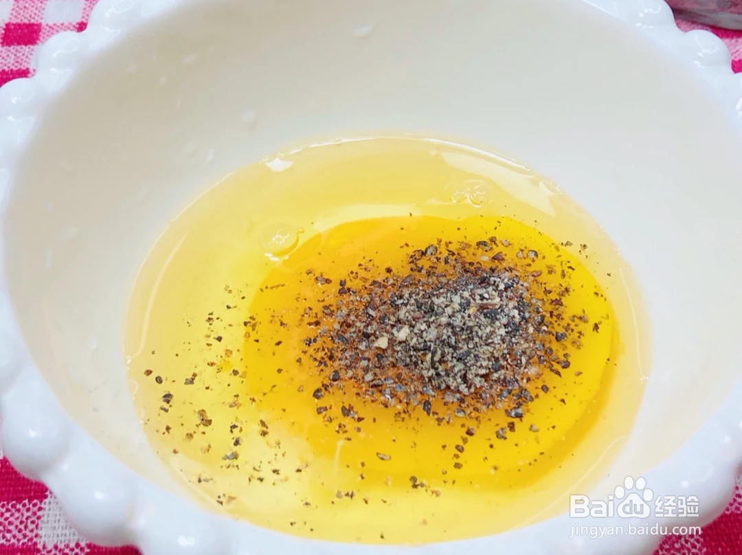 再取一个碗,打入一个鸡蛋,撒上一点补锌的牡蛎粉,搅拌均匀。