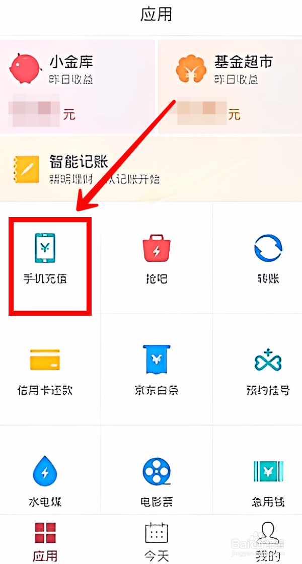 在应用界面中,点击【手机充值】。