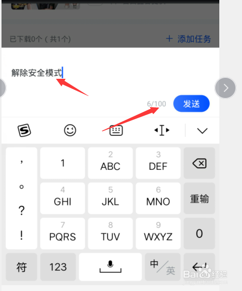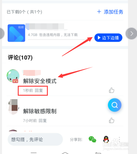 第四:点击下方评论选项输入【解除安全模式】点击发送。