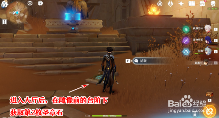 进入大厅后,就可以在大厅中间的台阶下面拿到这一组的第2枚圣章石。
