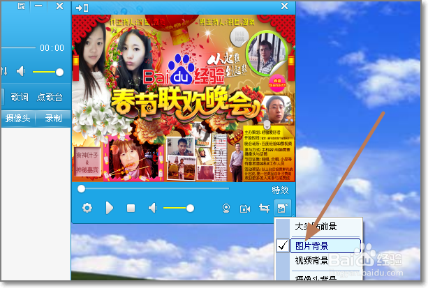 选择使用图片背景做为视频的背景,除此之外还可以做其它方式做视频背景。再点击一下就取消图片背景模式。